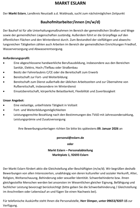 Bauhofmitarbeiter/innen (m/w/d) gesucht!