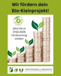 Die Öko-Modellregion Naturparkland ruft für das Jahr 2026 erneut zur Einreichung von Förderanfragen für Kleinprojekte im Rahmen des „Verfügungsrahmen Ökoprojekte“ auf.