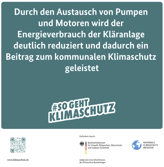 Ziel des Vorhabens ist es, den Energieverbrauch der Kläranlage deutlich zu reduzieren und somit einen Beitrag zum kommunalen Klimaschutz zu leisten.